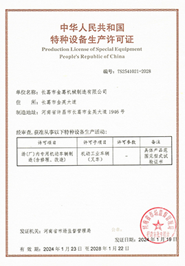 先后通過1S0 9001質量管理體系認證、特種設備生產(chǎn)許可證、歐盟 CE認證、農(nóng)業(yè)機械試驗鑒定等。
